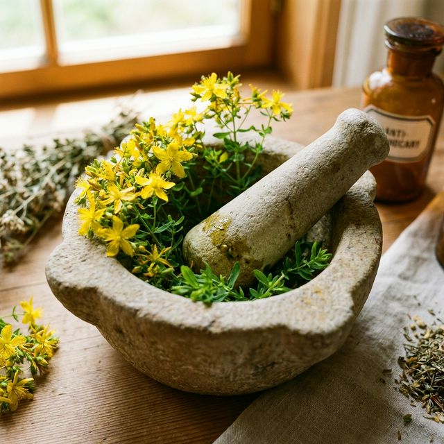 St. John's Wort (Hypericum perforatum) is a vibrant, sun-loving herb steeped in ancient Midsummer magic. Traditionally known as the "scare-devil" (Fuga Daemonum), it was believed to hold immense solar energy to ward off negative spirits.